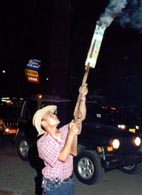 dressed in wild western outfits and hats, were driven to the Green Bottle