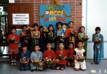 lower elementary students at MCCI proudly display the krathongs they