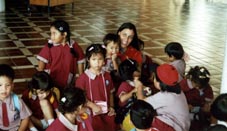 Mary and kinders taking a break