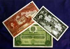 baht banknote and a 100 baht black and white uni-face banknote from the King Prajadhipok (Rama VII) era, both authorized in 1934, and a unique 1913, 20 baht uni-face note