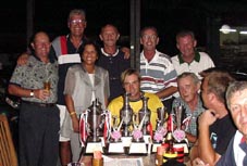 load of trophies - IPGC Club Champion Darren Robson (seated center), Ladies Champion Viv Lill (standing 3rd from left), Rabbits Trophy winner Len Jones (standing 4th from