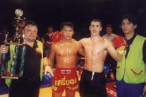 Thailand’s 1998 Muay Thai champion Sutmongkol, from the Carry Boy Gym, Bangkok, lost to 3-time welter weight (66.7 kg) World Champion Noel Van den Heuvel