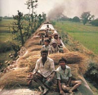 open under the starry skies. If there has been rain, the landscape takes on a serene, lithographed look. Indians up to their knees in water prepare the rice fields with