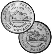 Later in 1978 a new coin with a racing-car was released from Macao, this time with no advertising, and a mintage of 5,500. This coin has a catalogue value of