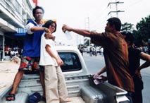 threatened to ignite the fuel. But before he could do this, Den rushed him and managed to wrestle the lighter away. Chalerm then jumped on his motorcycle and drove off.