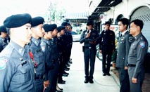 During an official changeover ceremony, Pol. Maj. Naradech addressed the police officers in his new command, identifying his policies and intentions of
