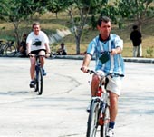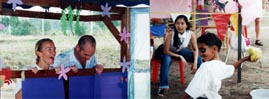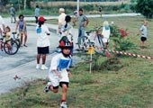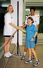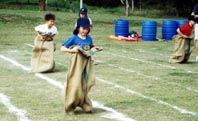 While the younger pupils were seeking rest and refreshment it was the turn of the upper primary students to show their speed on the track. These were fast and furious with some very close races over 50 and 100 meters. The later part of the morning saw the primary students move to the field events leaving the track free for the secondary students to fight for the finish line. There were some very close finishes in 50, 100 and 200 meter races and with double points at stake the relays sent the crowd wild. Before the totals could be calculated, there was time for a few more fun events which included the slow bicycle race, the 3 legged race, brother and sister race and the one that everyone was waiting for the 4-minute mile challenge. This is where a team of students, staff and parents join forces to try to run one mile in under 4 minutes. In this event 32 runners each ran 50 meters in a shuttle relay in less than the 4 minutes, a feat never yet accomplished. With a team carefully selected from willing volunteers they managed to complete the distance in 3 minutes and 55 seconds - a fantastic achievement for all those who competed. So with all the events completed it was time to announce the winners. There were two trophies to win the best overall individual performance and of course the Sports Day Trophy for the winning house. The Victor Ludorum Cup went to Em in year 11 with Ben Coulson in year 6 a close second. The winners of the 2001 Sports Day Trophy were Cobra House. Well done to all those who participated and a big thank you to all the staff and parents for their help and support.