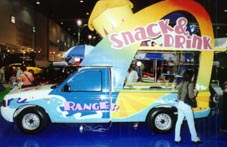 for example), but amazingly some were very sparse. Ford stuck a few store dummies in swim suits on their stand, an American F150 step-side pick-up and a locally produced
