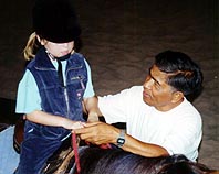 A small girl gets a riding lesson