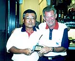 1 winner Yazuo Suzuki receives his trophy from birthday boy Richard