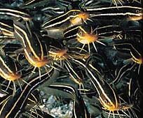 known as Plotosus lineatus, which assemble in tight formations referred