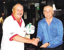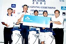 Irish Open 2001 Champion George Meigh (left) accepts his trophy from