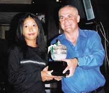 Irish Open 2001 Ladies Champion Oradee Kaesavane accepts the spoils of