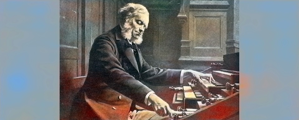 Franck at the organ console at St. Clotilde Basilia in Paris (Jeanne Rongier).