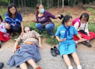 One person was killed and 20 kids hurt when a car crashed head-on with a school bus in Mukdahan.
