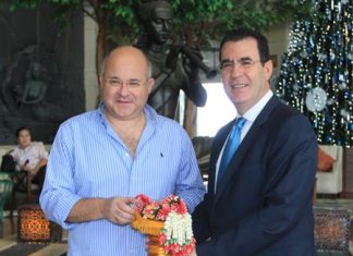Antonello Passa, GM of the Royal Cliff Hotels Group (right), greets His Excellency Ismail Ahmed Khairat (left), Ambassador Extraordinary and Plenipotentiary of the...