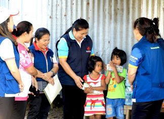 The Sattahip Red Cross came to the rescue of a poor family left homeless after a fire at construction camp shack.