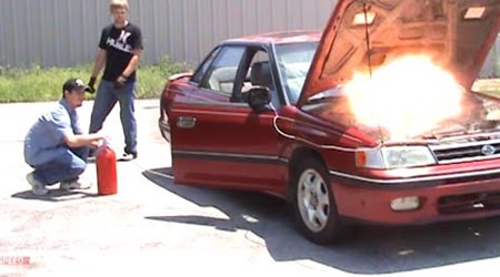 We managed to repair the damage to the flare and guard, and it looked presentable for race day, so the crew was forgiven, but there was damage that we had overlooked. The battery lived behind the wheel arch in what used to be the well for the spare tyre, and the battery position had been moved as the wheel hit it. In the last race of the day, the battery moved further forward under braking and shorted out the terminal, causing the battery case to catch fire, and our first non-finish.