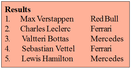 At the previous Grand Prix, first across the line had been Ferrari’s Sebastian Vettel, however as he exceeded the track limits while dicing with Hamilton (Mercedes), he was penalized by 5 seconds being added to his time, effectively relegating him to second place. This time, with Leclerc (Ferrari) and Verstappen (Red Bull) dicing neck and neck, the Ferrari driver was forced to take an off-track excursion on the second last lap. After deliberating for a couple of hours, the stewards (this time) said no penalty.
