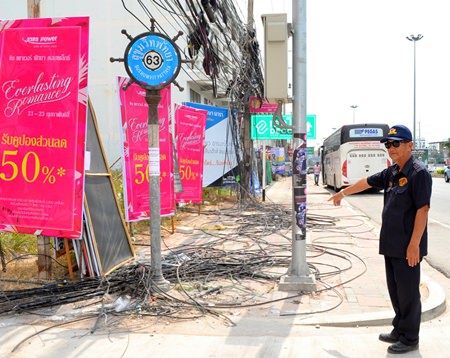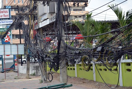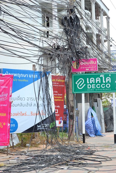 The fire is out, but the mess remains on Sukhumvit Soi 63 where a jumble of electrical wires was left following a utility pole fire earlier this month.