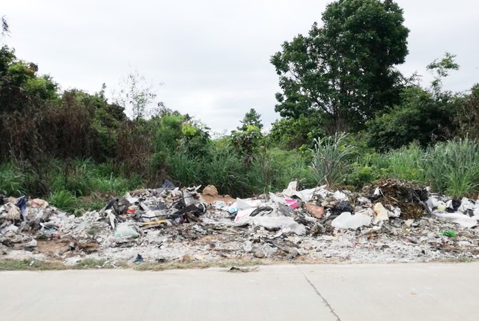 East Pattaya residents are complaining that people are dumping garbage illegally behind Tarapattana School and no one is cleaning it up.