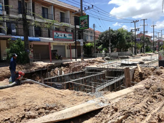 Overflowing sewage due to roadwork on Soi Siam Country Club has Park View Village residents holding their noses.