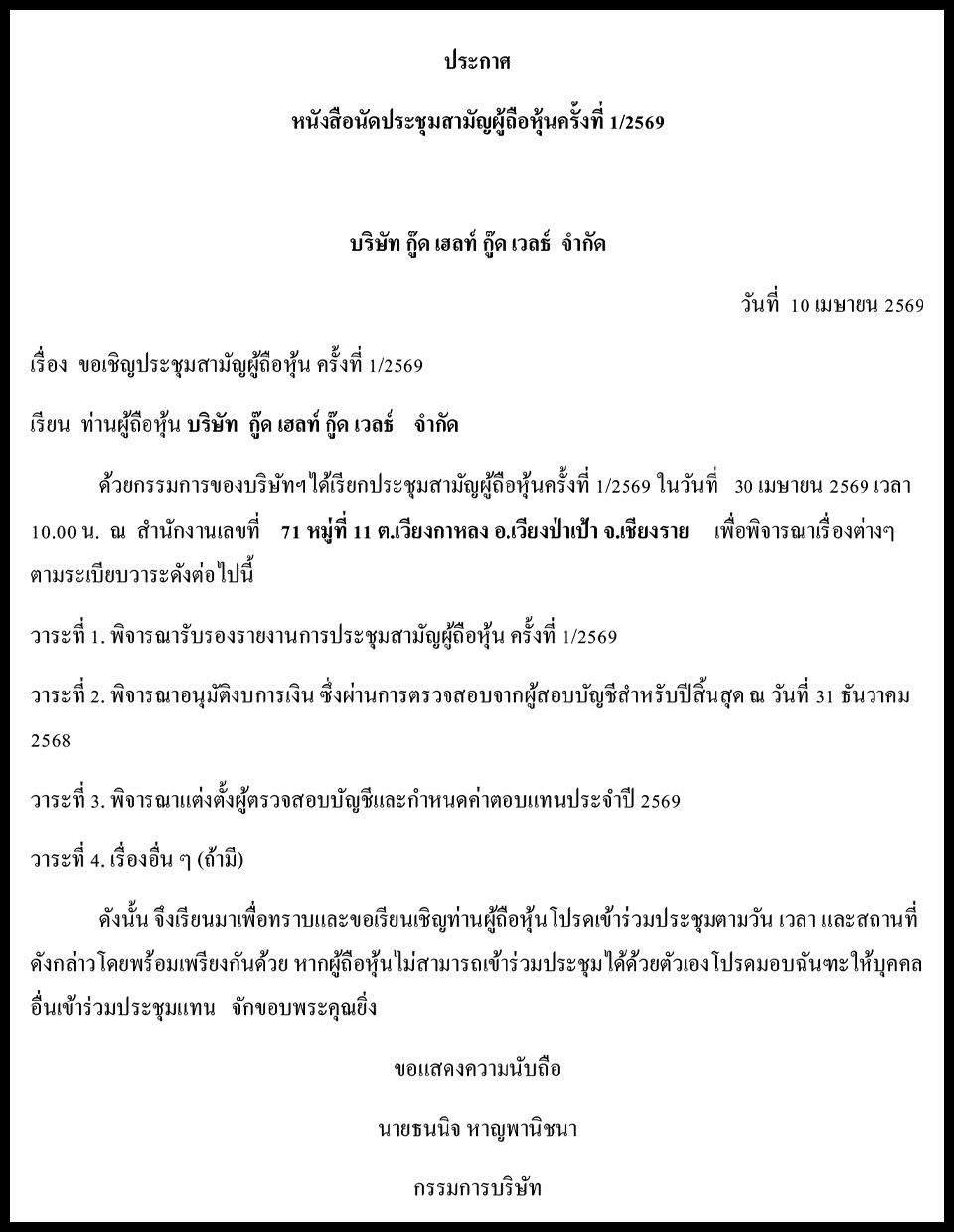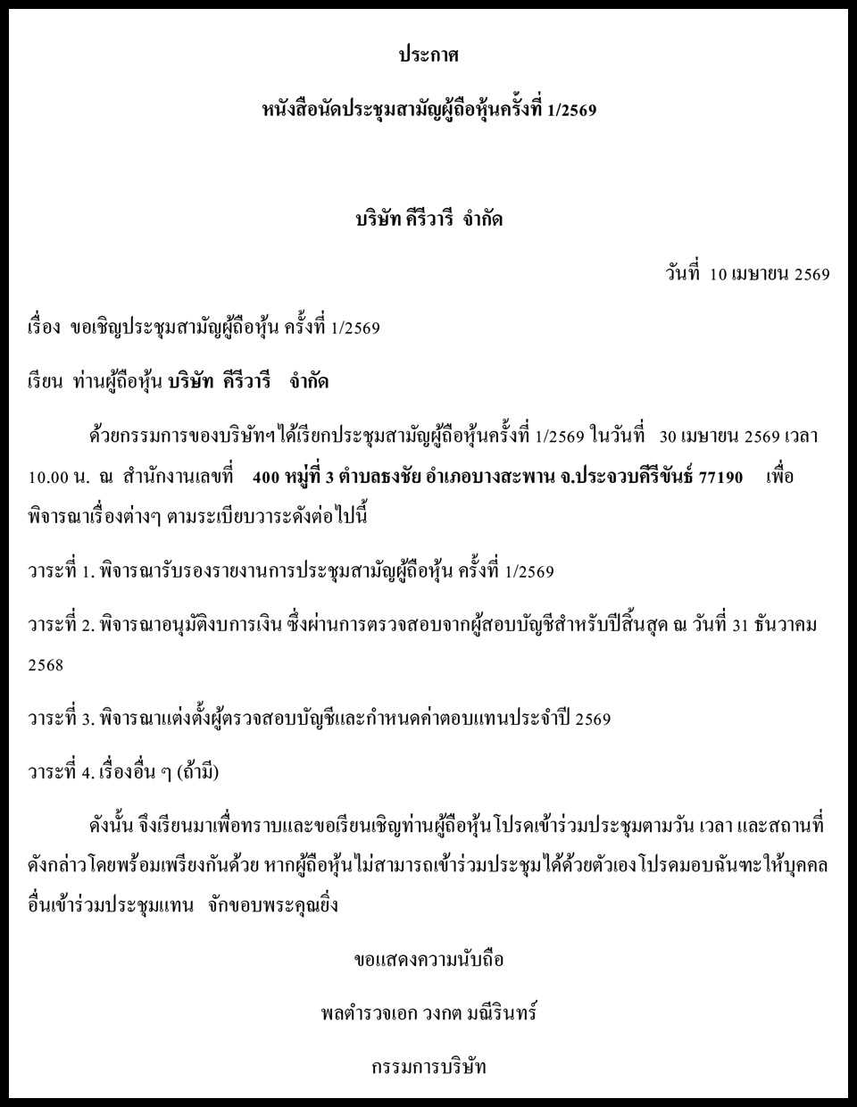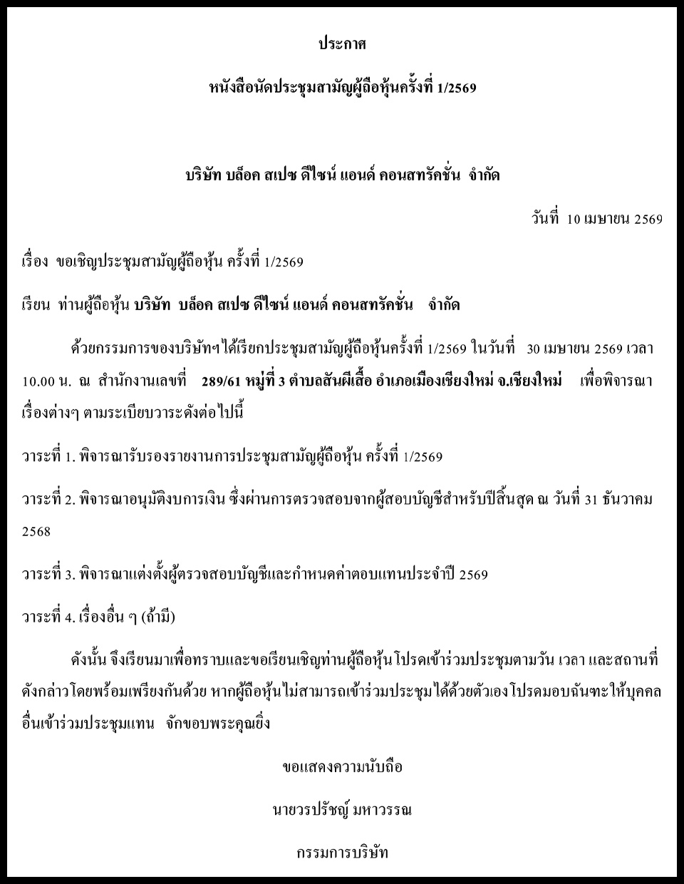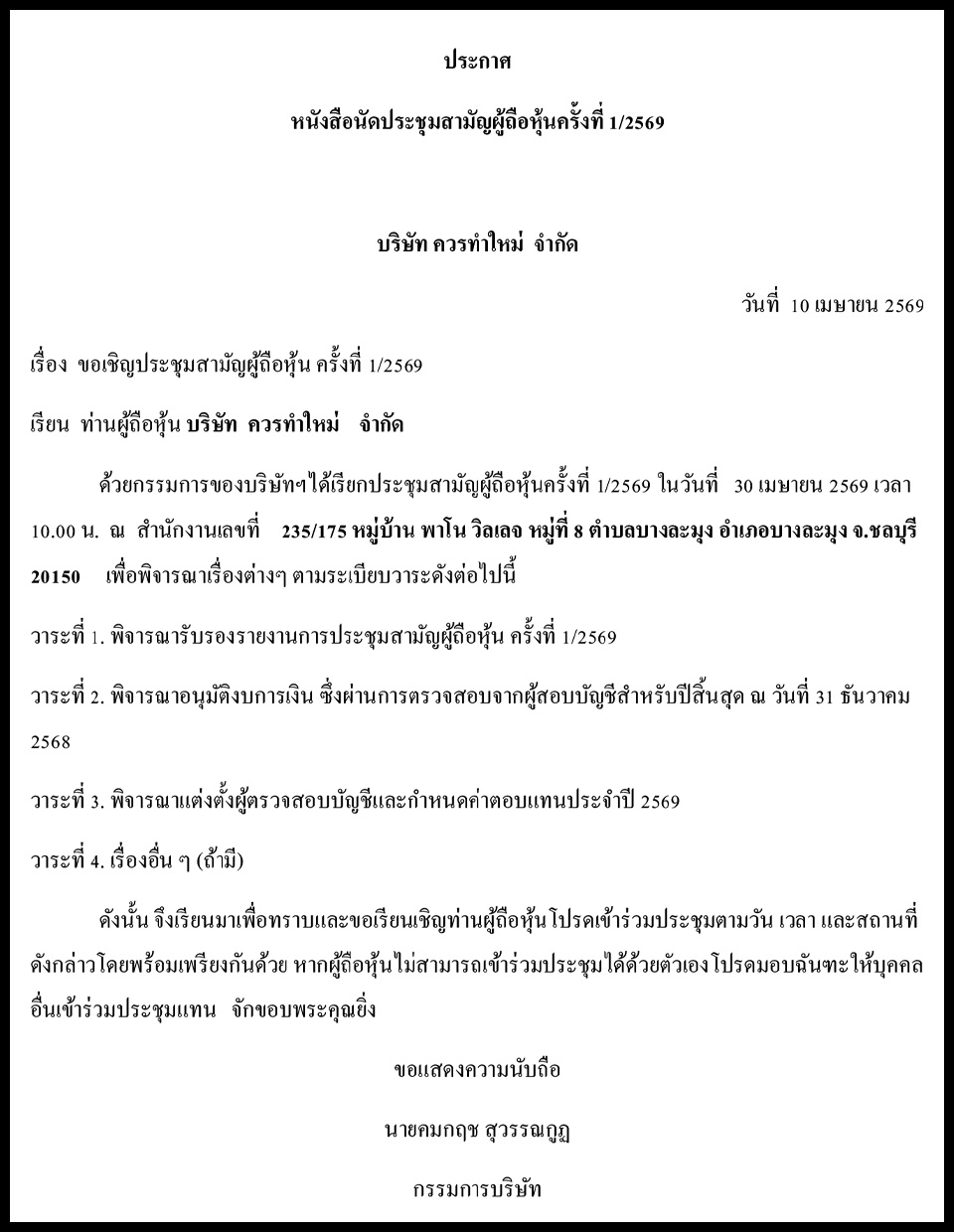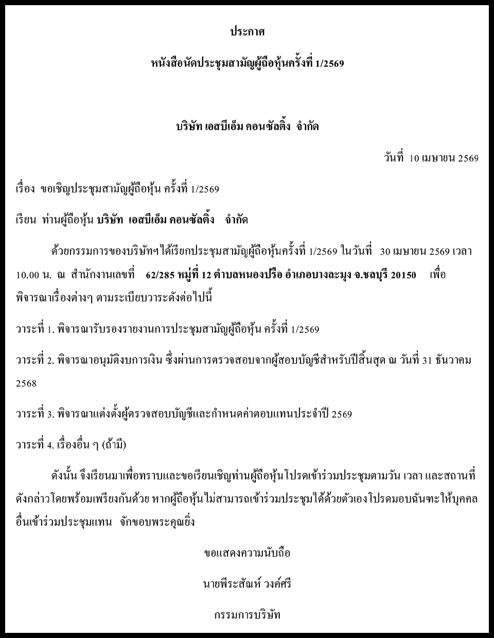 Law & BusinessBusiness Announcements Business Announcements 10 เมษายน 2569 (5) By Pattaya Mail April 10, 2026 0 419 Share on Facebook Tweet on Twitter tweet