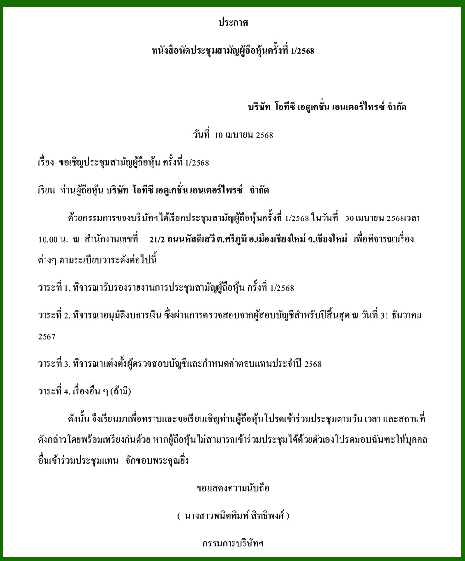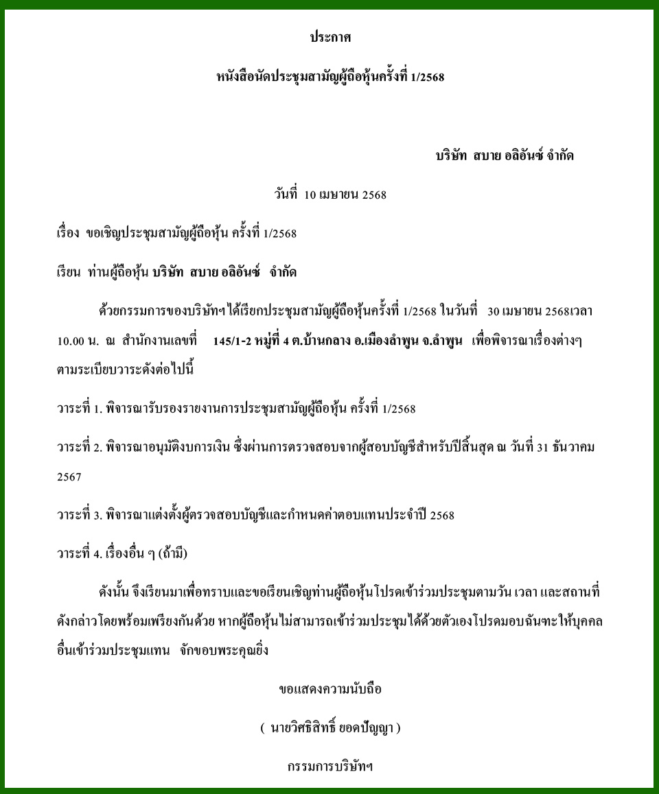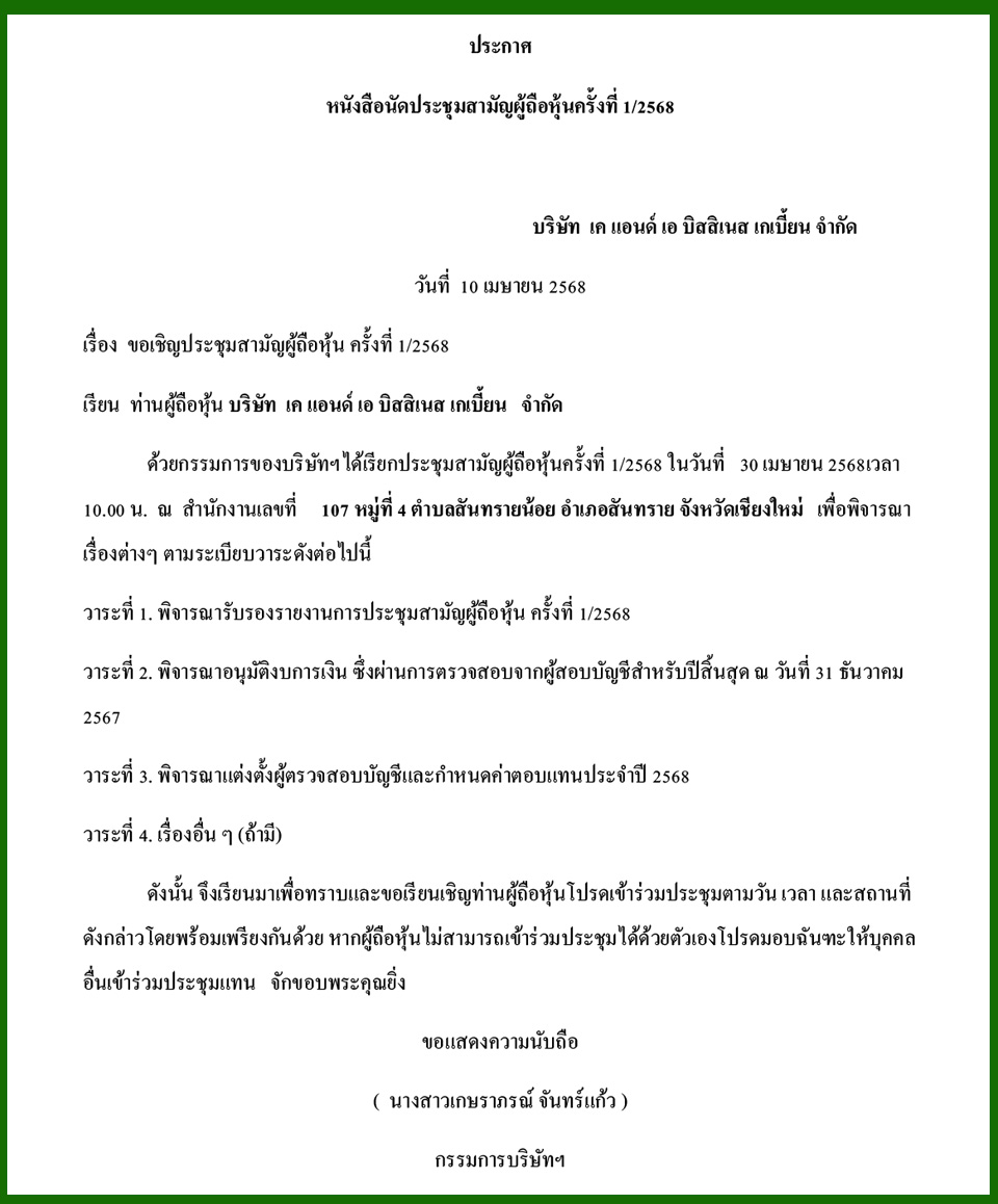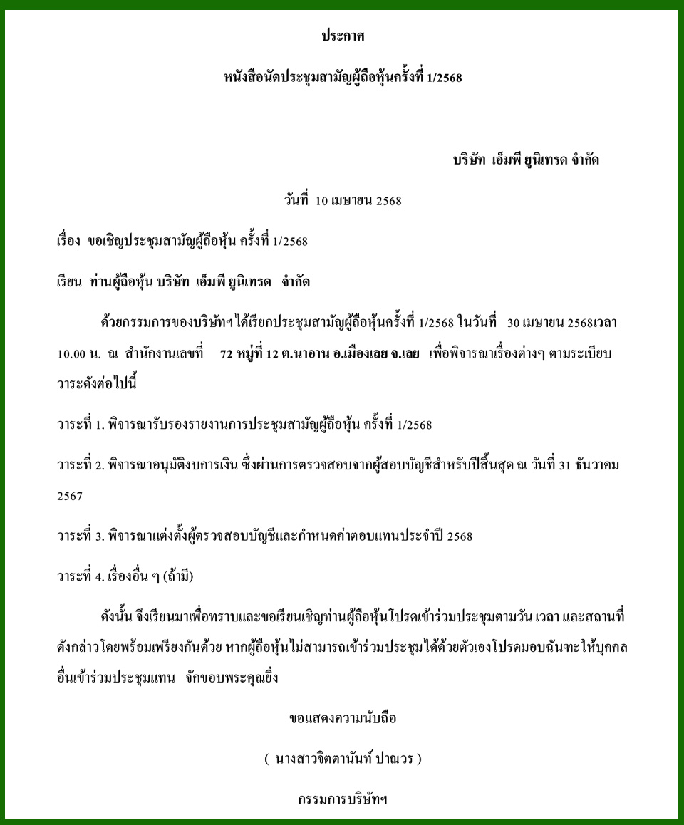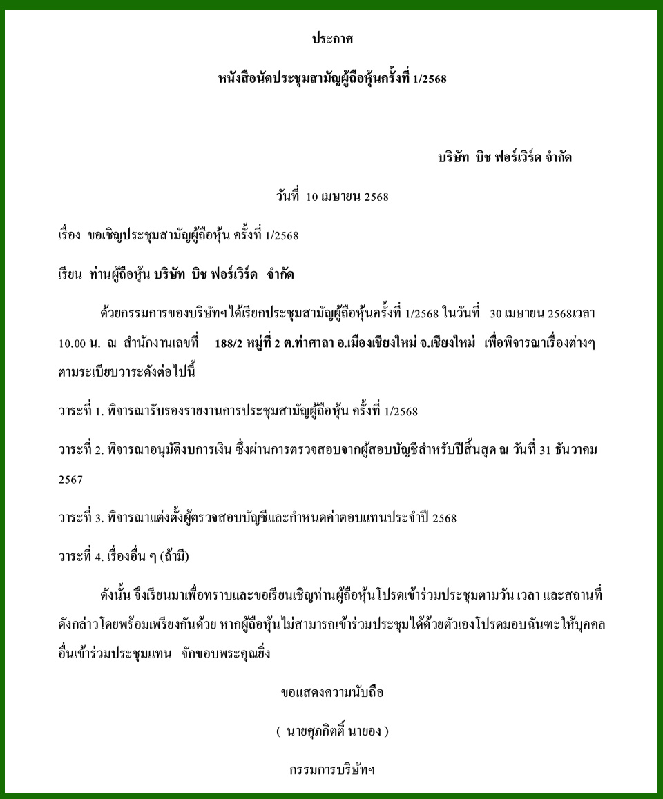 Law & BusinessBusiness Announcements Business Announcements 10 เมษายน 2568 (6) By Pattaya Mail April 10, 2025 0 1910 Share on Facebook Tweet on Twitter tweet
