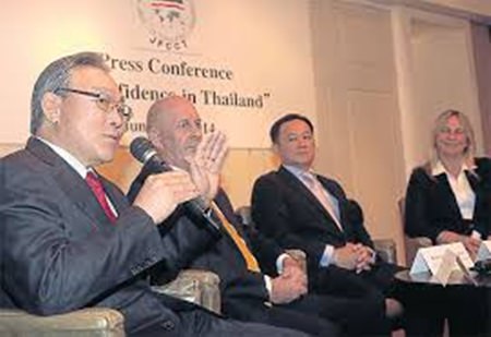 At a press conference on “Confidence in Thailand” at Grand Hyatt Erawan Bangkok, JFCCT revealed opinions of the foreign business community in Thailand on trade and investment in the country during the current situation.