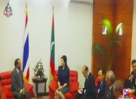 Ms Yingluck said after the meeting that this first official visit of a Thai Prime Minister to the Maldives was intended to strengthen 34 years of diplomatic relations. The two countries agreed to increase trade value and promote tourism.
