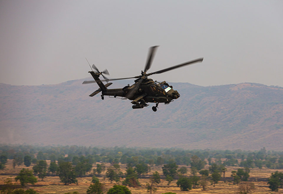 According to a press release from the Royal Thai Armed Forces, 609 military personnel from Thailand, the United States, Singapore, Malaysia and Indonesia took part in the “combined arms live fire exercise” that was held at the Artillery Center in Lopburi’s Phatthana Nikhom district. The exercise featured drills such as strategic parachuting, sniping, aerial strikes, artillery preparation and medical evacuations, as well as the use of F-16 jet fighters, BTR armored vehicles, AH-64E Apache helicopters and HIMARS multiple launch rocket systems.