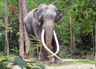 Thai elephant ‘Plai Sak Surin’ refreshed after long journey home from...