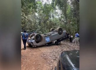 Vehicle carrying pilgrims overturns on Kitchakut Mountain in Chanthaburi