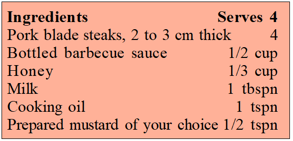 If you do not have a grill, this can be cooked in a heavy based skillet. Check degree of BBQ when there is a little pink left.