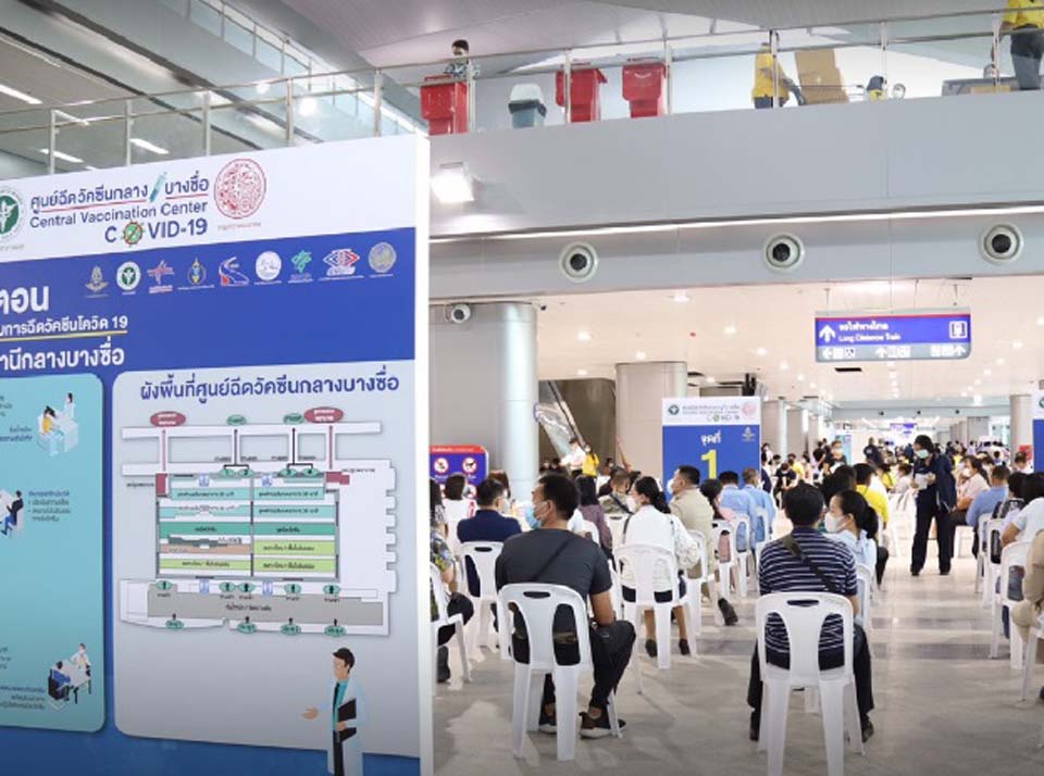 The booster shot service at Bangkok’s Bang Sue Grand Station is being offered to those who have received two injections of the AstraZeneca vaccine or been administered any of the cross-vaccination approaches such as Sinovac-AstraZeneca and Sinopharm-Pfizer.