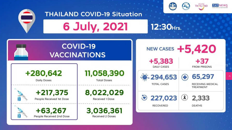 NewsThailandUpdate COVID-19 Thailand COVID-19 Situation as of 6 July, 2021 By Pattaya Mail July 6, 2021 0 1415 Share on Facebook Tweet on Twitter tweet