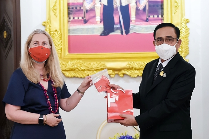 At the Ivory Room, Thai Khu Fah Building, Government House, H.E. Mrs. Helene Budliger Artieda, Ambassador of the Swiss Confederation to Thailand, paid a courtesy call on Prime Minister and Defense Minister Gen. Prayut Chan-o-cha on occasion of her assumption of position. Prof. Narumon Pinyosinwat, Government Spokesperson, disclosed gist of the meeting as follows:
