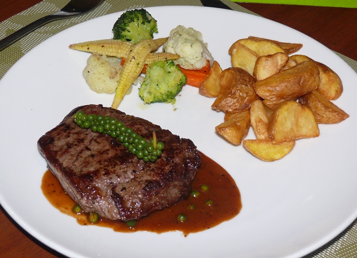 Meanwhile, one of our group had gone for the Australian beef pepper steak. This was one of the most expensive dishes, but was only B. 490. This was imported steak as well. It also came to the table cooked to order.