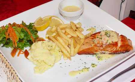 Madame had the salmon in a white sauce and was impressed.