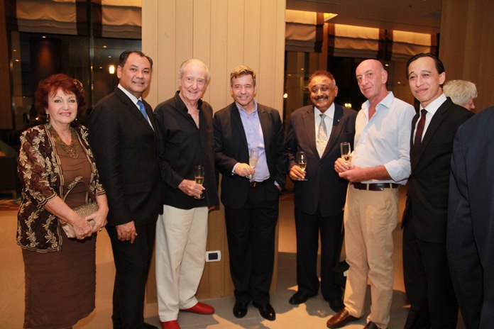 Mrs. Panga Vathanakul (3rd right) MD of the Royal Cliff Hotels Group together with GM Prem Calais (left) and RM Jan Lorensen (2nd left) thank Guido Vannucchi (2nd right) and Thomas Ruegsegger (right) of Italasia for the excellent wines and expressed the highest compliments to Executive Chef Peter Held (3rd left) for his magnificent creations.