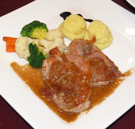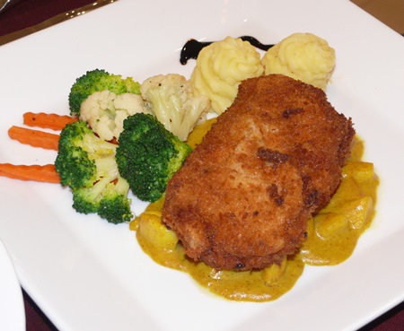 The set menu was very inviting for me, whilst Madame ordered the avocado fries and a Caesar salad with chicken lava, (like Kiev but served on a Kashmiri curry) for the main dish. Both of us were over the moon with the whole dining experience and we were left exceptionally impressed with Laong’s Bistro and Boutique. Not only the amazing ambience, but also the originality in some of the dishes. The deep-fried avocado slices with the salsa, lemon mayo and cocktail sauce was a real stand-out. The set menu on our week which at B. 475 included a glass of wine was superb value with the saltimbocca main course which had two large pork medallions.