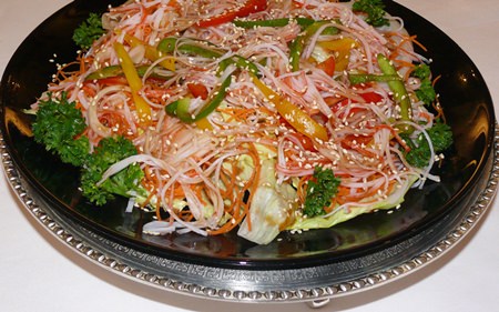 Table settings are of high quality and the large starched napkins are needed for folks like us who are not all that adept with chopsticks.  However, requests for spoons and forks are quickly and happily met (in fact I didn’t have to ask, our waitress could see I was in trouble with the chopsticks and supplied the cutlery)! The table carousel had another wildly ornate Chinese carousel on top as well, with so many dishes displayed, I was sure I was not going to get through them all – but, just for you gentle reader, I gave it my best shot.