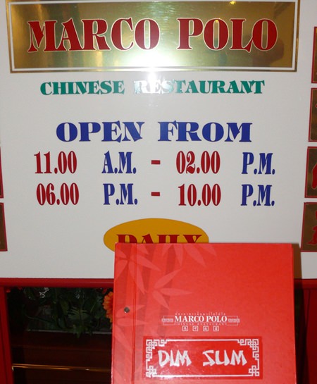 By the way, the Marco Polo is also open every day for dinner from 6 p.m. until 10 p.m., with a full dinner menu.