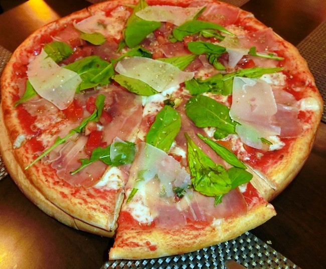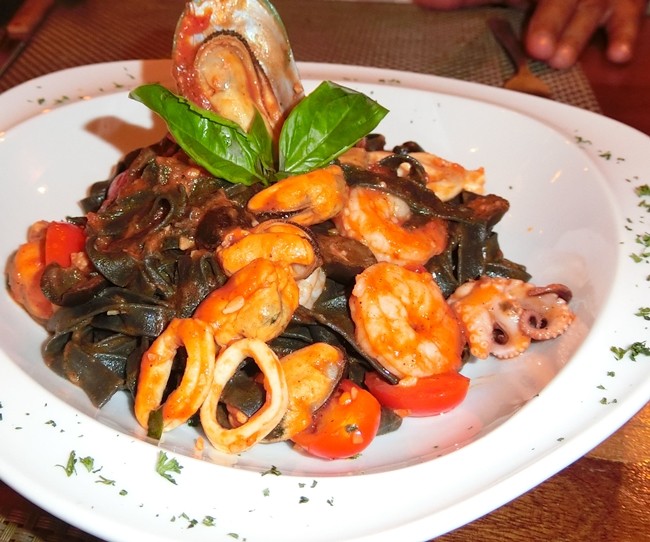At Marco’s suggestion, we began by sharing a pizza and then move to separate dishes, but shared again. The pizza was very filling with a medium crust and plenty of cheese and was Marco’s Signature Pizza and it was no ordinary pizza, but tomato, mozzarella, Parma ham, fresh cherry tomato, rocket salad and parmesan cheese. We then moved on to Gnocchi, the famed Italian dumpling in Gorgonzola cheese, and a Black squids-ink tagliatelle with seafood and a home made ravioli filled with ricotta and spinach served with a fresh tomato sauce and a Scaloppine alla Parmigiana escalope, tomato, mozzarella and Parma ham. All of these were very enjoyable, with the scaloppini being my choice for dish of the evening.