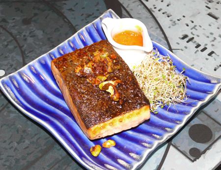 The menu is not extensive, but neither is it expensive; however, it should be noted that the portion sizes are more of a ‘tapas’ style, rather than full meal sizes. It begins with Appetizers which range between B. 80 – B. 120, and begins with a Gazpacho, the Spanish cold soup, and fits with the “Pedro” in the name, being Spanish for Peter. One interesting item in the appetizers was a grissini with blue cheese and caramelized onion dip.