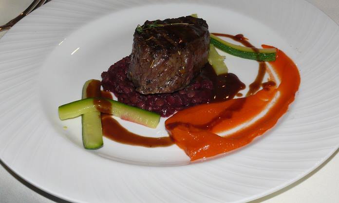 The next course was a Wagyu beef and not just a lump of beef, but an incredibly tender generous lump of beef served with braised lentils, beetroot, carrot puree and buttered zucchini batonettes with a red wine sauce. This wine was the Stonefish Nero, Old Vines Shiraz Barossa Valley 2016 and was my wine of the night closely followed by the Cabernet Sauvignon.