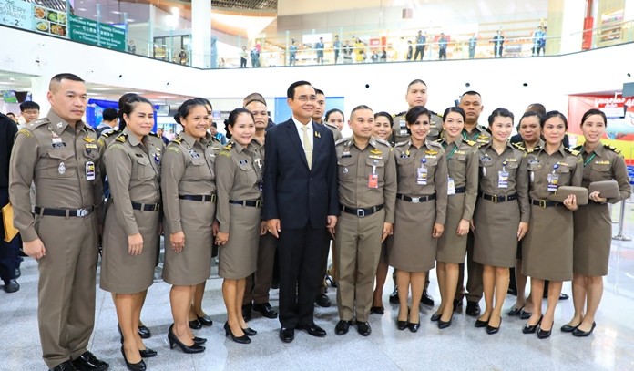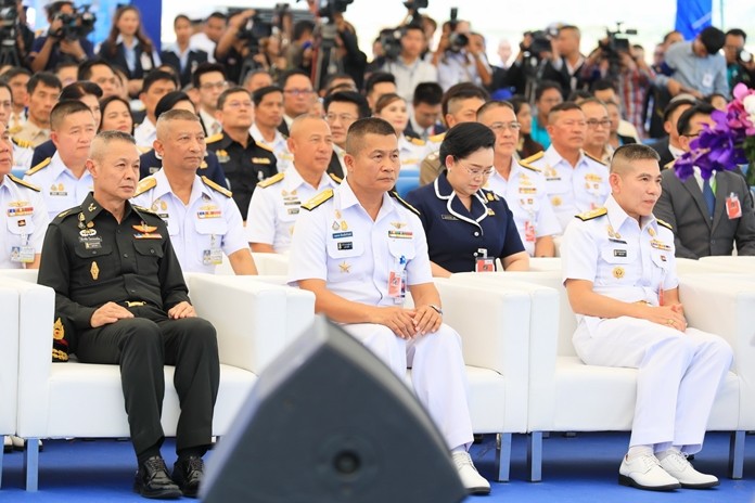 The Prime Minister then visited an exhibition and facilities inside the new terminal with navy commander-in-chief Adm. Luechai Ruddit.