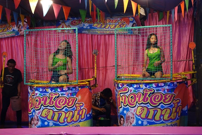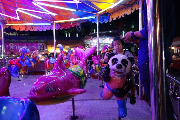 The fair was a mix of merit-making and holiday-making, with food and game booths mixed among opportunities to offer robes to monks, refill oil lamps and lie down in a coffin to dispel bad luck.