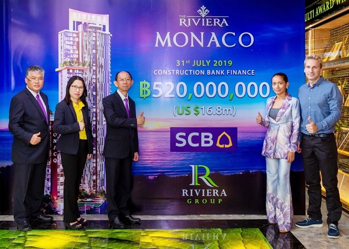 The Riviera Group, Pattaya’s leading Luxury property developers signed a Construction Bank Finance deal for 520 million baht (US$ 16.8 million) with Siam Commercial Bank on 31 July, 2019. This loan is for the final construction phase of The Riviera Monaco.
