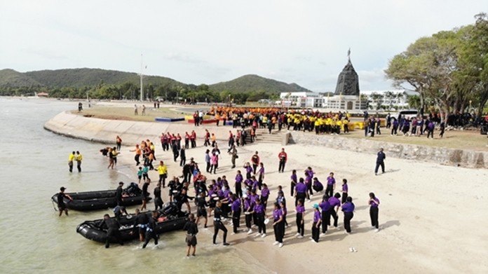 At Toei Ngam Beach in Sattahip district of Chon Buri province, the Commander of the Royal Thai Marine Corps, VADM Ronnarong Sittinan, launched the volunteer activities as part of the Corals and Marine Animals Conservation royal project. The event was attended by the Chief Justice of the Central Juvenile and Family Court, Sittisak Wanachagit, the Associate Judge of the Central Juvenile and Family Court, Dr. Nilubol Limpongpan, military officials, leaders of local administrative organizations, public members, school and university students and representatives of the public and private sectors. Some 2,000 people gathered to grow coral reefs, pick up garbage and clean the beach.
